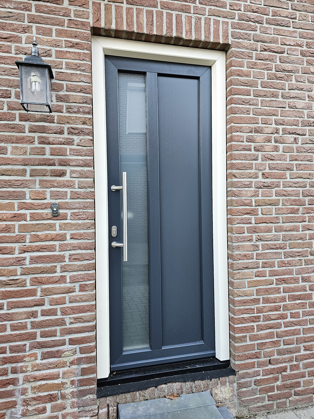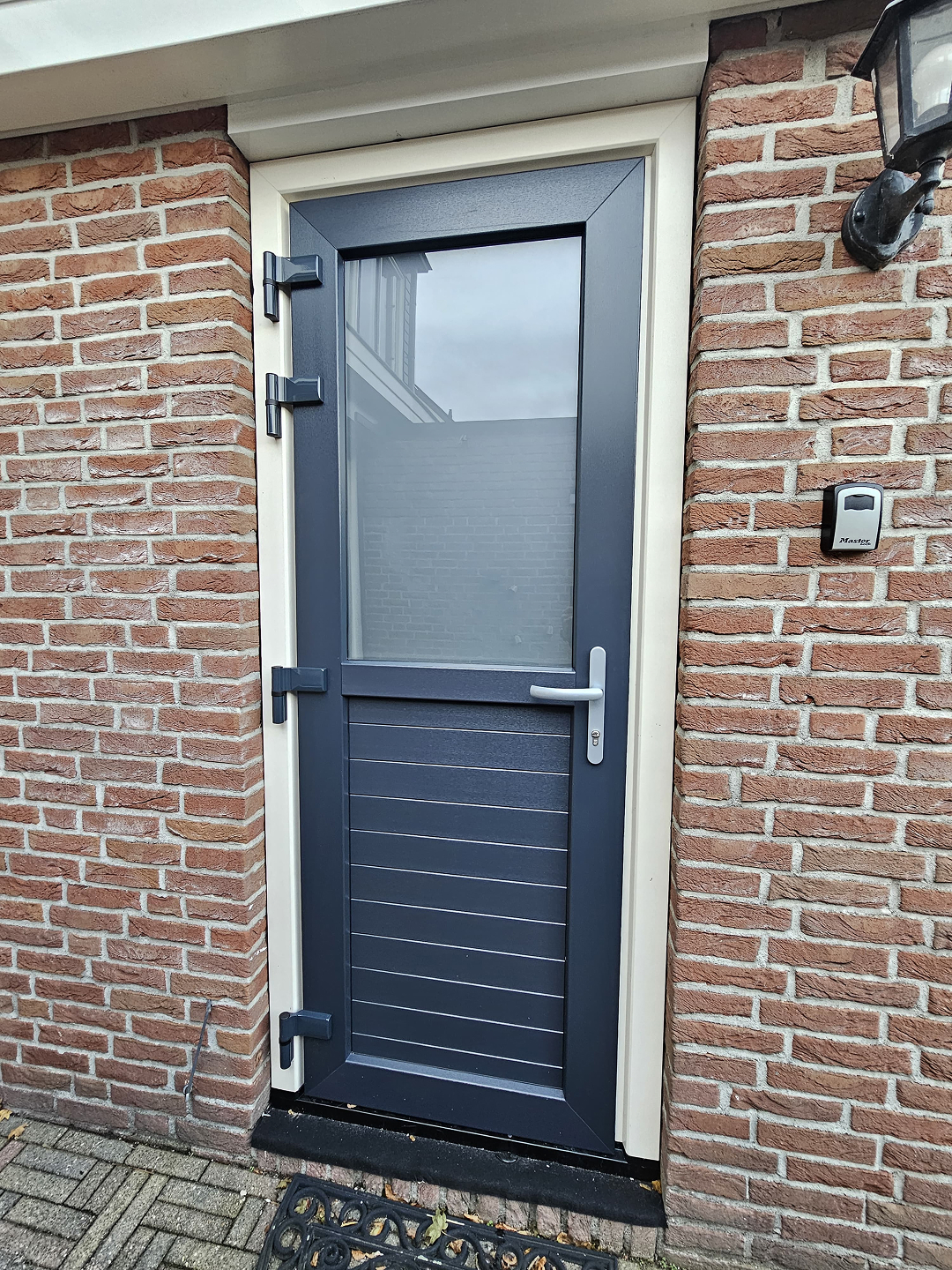 De kunststof kozijnen zijn aan de buitenzijde uitgevoerd in crรจme houtnerf, aan de binnenzijde crรจme glad.